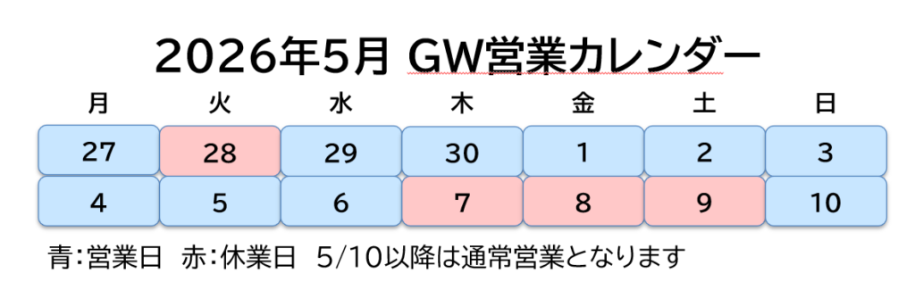 2026年5月 GW期間中の営業についてのお知らせ